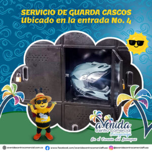 GUARDACASCOS: Deja tu casco de manera segura en la entrada 4 donde encontraras el personal que brinda este servicio por un costo de $500 pesos la hora. Horario: 9:00 a.m. – 8:00p.m.