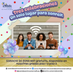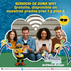 ZONA WIFI : conéctate con Avenida, disfruta de red inalámbrica para que navegues en internet desde tu portátil o celular, completamente GRATIS. En la plazoleta de gradas piso 1 y piso 2, Ingresa a RED: WIFI-CC-AVENIDA-SISTELME completa el formulario de conexión y listo.