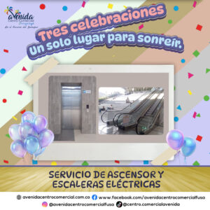 ESCALERAS ELECTRICAS Y ASCENSOR: Para comodidad de nuestros visitantes con carros de mercado, personas con discapacidad, adultos mayores y mujeres embarazadas, se cuenta con un ascensor, en el costado occidental frente a Piso 1 Banco de Bogota, Piso 2 Frente a Drogueria Colsubsidio y Piso 3 Pasillo Casino . Recuerda que tenemos servicio de escaleras eléctricas en la mitad del centro comercial, ten en cuenta hacer buen uso.