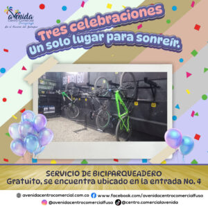 BICIPARQUEADERO: Pensando en tu bienestar y en la movilidad sostenible de la ciudad, te brindamos GRATIS un espacio seguro para tu bicicleta, recuerda traer la tarjeta de propiedad y elementos de seguridad (Cadena -Guaya o Candado). Horario: 9:00 a.m. – 8:00 p.m.